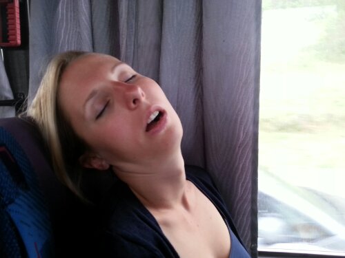 The bus into Macedonia was interesting with snow covered mountains and a not so friendly border guard. Kathi had a nice sleep as usual.