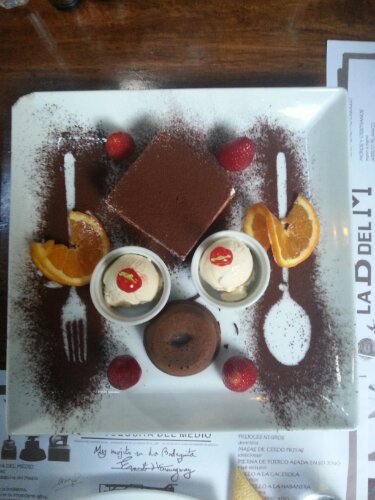 He even put together a mix of the deserts they did at the place which looked like this and was a plate with ice cream (home-made), tiramisu (home-made) and a chocolate cake with runny chocolate inside (home-made 20 minutes before we had it).