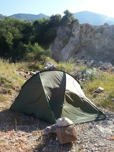 As a cyclist,  do not ever!!! attempt to set your tent up when it’s even remotely windy. Continue until you find a better camping spot or a hotel. Trust me. Setting the tent up was pure torture, the wind making the tent act as a sort of kite, so not only did we tie it to rocks we found around there, but we had to use at least ten heavy rocks just to weigh the tent down enough so it wouldnt blow away. Then we tried to cook in the doorway and not only were we constantly worried the tent might catch on fire but halfway through the water stopped boiling as the cooker had run out of fuel and I had to crawl outside the tent to get more. The food ended up being delicious which was a bonus, but all the while we had clearly (or so we thought) been caught in a full-blown (pardon the pun) storm. I had about 5 hour’s sleep that night. It was blissful. Not.